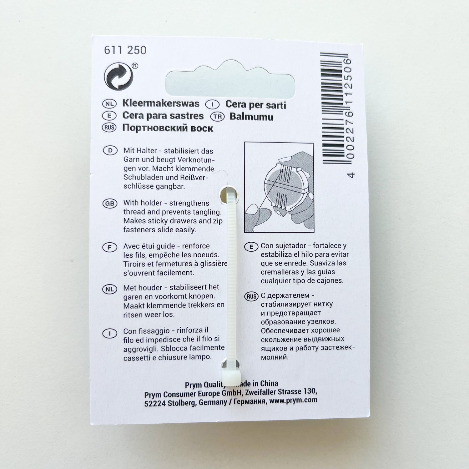 The Prym dressmaker’s wax is available as a practical round plate in a two-piece transparent plastic box which has three slotted openings on both sides. Pulling the thread through this groove, it is coated with a fine layer of wax and thereby gains flexibility and stability. Thus, the thread slides smoothly through the material and is not frayed nor can it get knotted. But not only thread, but also zip fasteners or jammed drawers can be freed up with the universally applicable dressmaker’s wax.