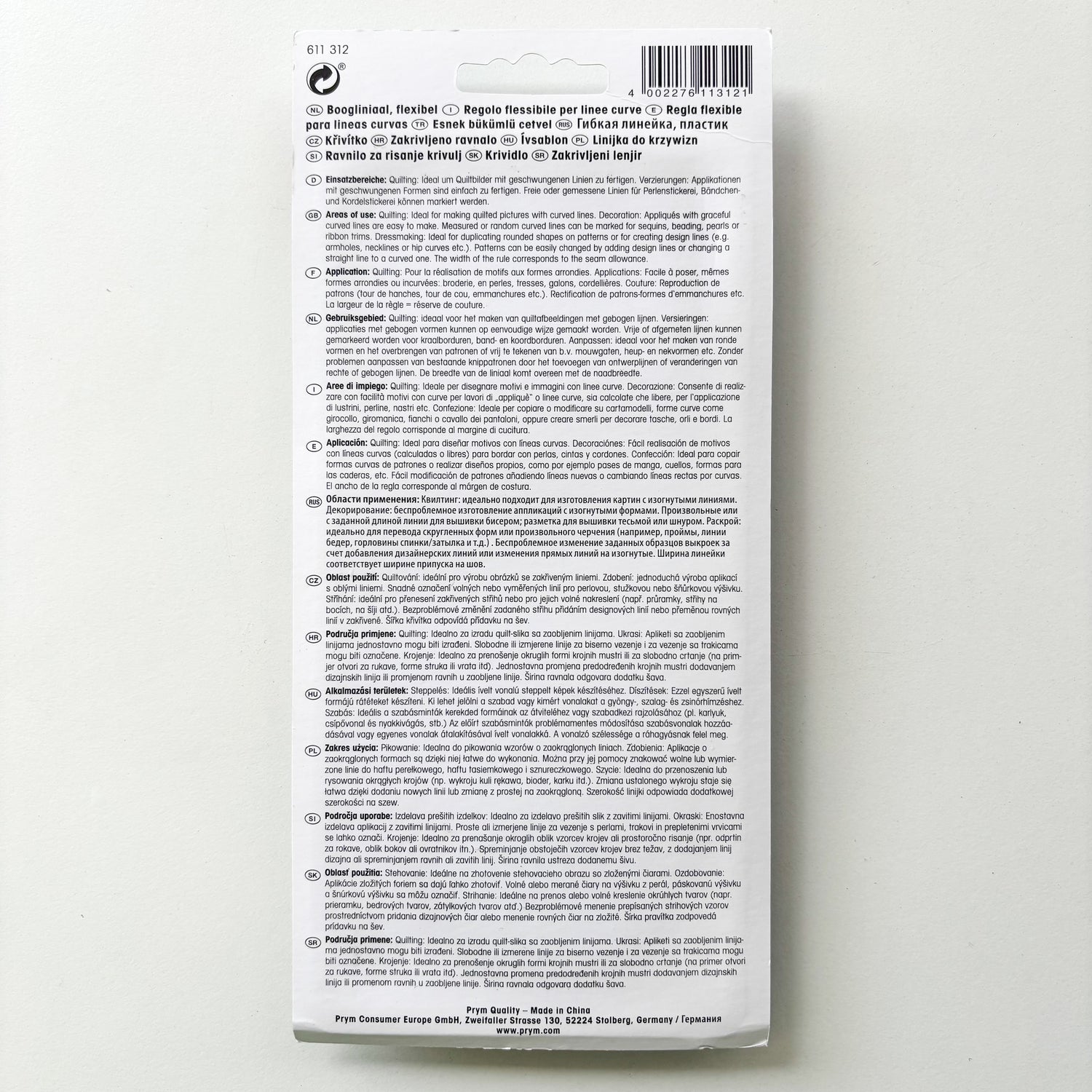 The flexible metal core of the curved ruler from Prym makes it an indispensable utensil for measuring, marking and transferring rounded and curving shapes. A flexible core inside the ruler makes it possible to shape the ruler as you require and then to straighten it out completely again later on. It can be placed without problem on narrow curves, in order to transfer the shape onto paper or fabric. It an also be used to measure curves. The flexible curved ruler has a scale in centimetres on one side and a scale in inches on the other. It is 50 cm/20 inches in length.